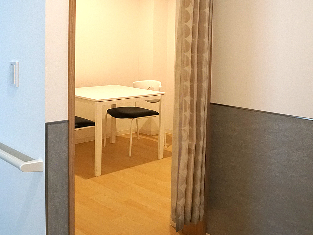 施設内は、玄関から内部まですべて扉を、車いすの方も使いやすく、少ない力で開け閉めできる引き戸を採用しています。